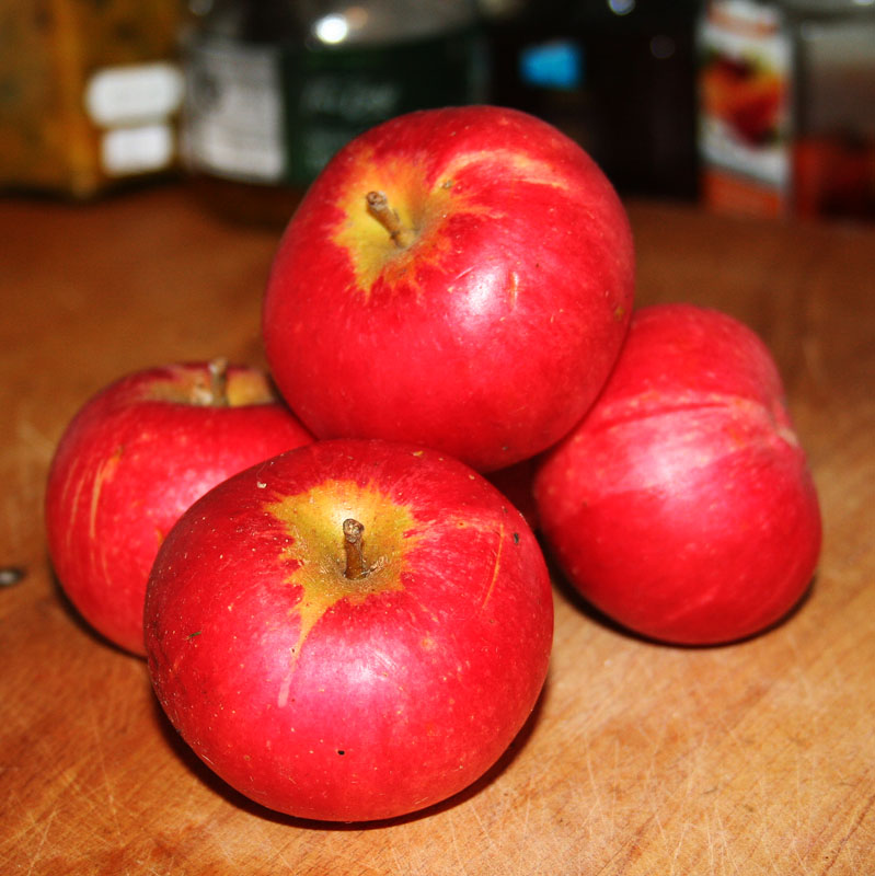 Here`s a quick one , maybe 30 minutes start to finish. One of the guys from work brought a bag of apples in today , Highly perfumed and pink through the middle , possibly “Pink pearls”.He asked me to knock a crumble up for work that he could eat cold as he didnt like hot fruit. Here`s the apples as they are straight off the tree and also a view though the cross section after they`re sliced….beautiful.