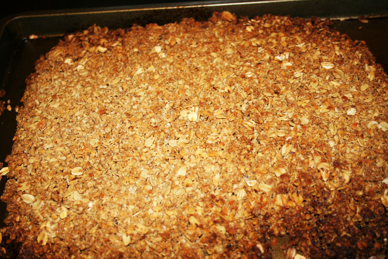 To make the crumble mixture i didnt measure anything out , just kind of went by the trusty measurement of “handfuls”…so here goes. Take a handful of Brazil nuts , demerera sugar , flour, Oats , and put them in a food processor.Add about 50g of unsalted butter and a pinch of cinnamon.Process these ingredients together on a slow speed until they start forming lumps.Empty the processor out onto a baking tray , level out and press the mixture down to firm up. Put this in the oven until the mixture turns golden.