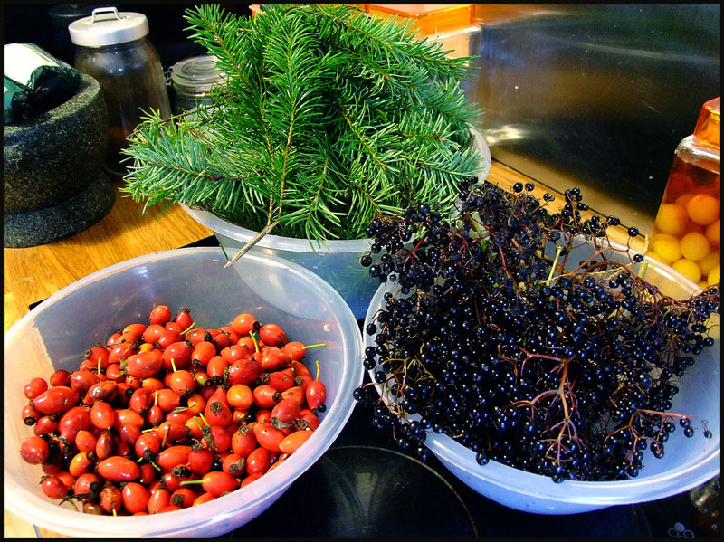 So there we go….Three ingredients from my wander around the cemetery , Elderberries , Rosehips and Douglas fir shoots.From them i would make an Elderberry puree , garnish and poaching ingredient for some pears that id bought.The rosehips would be used to make a syrup and jelly with , also i`d use a few larger ones to “candy” in the rosehip syrup.The pineshoots would be used to flavour some milk which in turn would be used to make the Pannacottas.