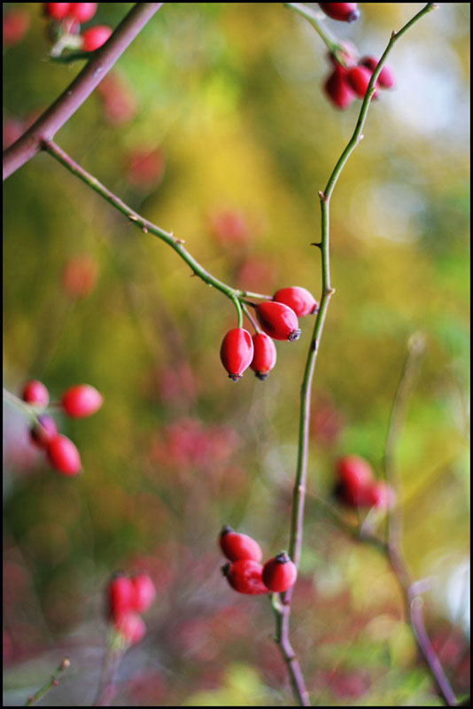 A short stroll through the trees and first thing that jumped out was a huge bush of wild rosehips , no leaves on the branches either as they had all fallen away and left only the fruit to collect.The people in the know reckon that the best time to pick wild rosehips is always after the first frosts as the cell walls of the fruit are broken down , gone soft and able to release more flavour.I only needed 2lb of fruit to make Rosehip syrup / jelly so i managed to get that amount in no time at all, there was enough for man and beast.