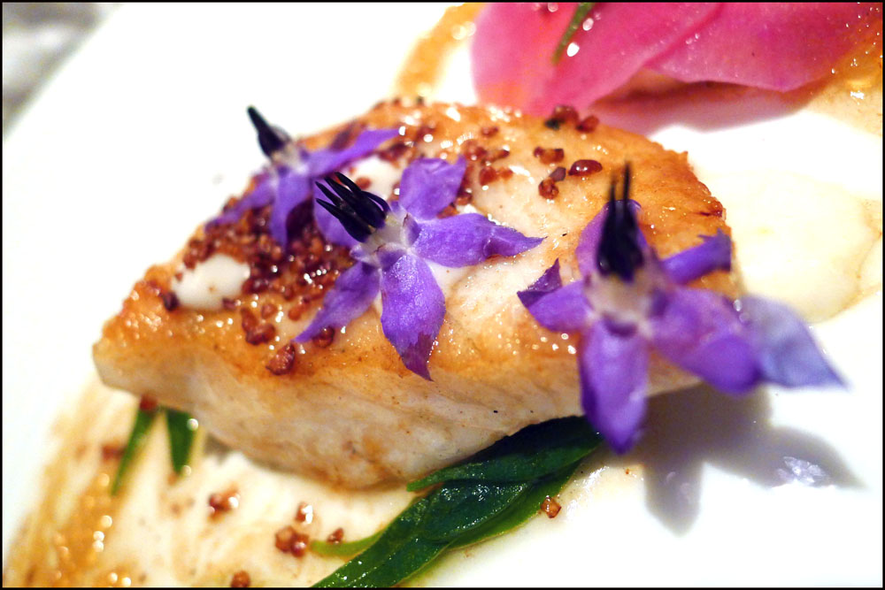 Roast Brill with Smoked Eel , Radishes , Buckwheat and Borage.