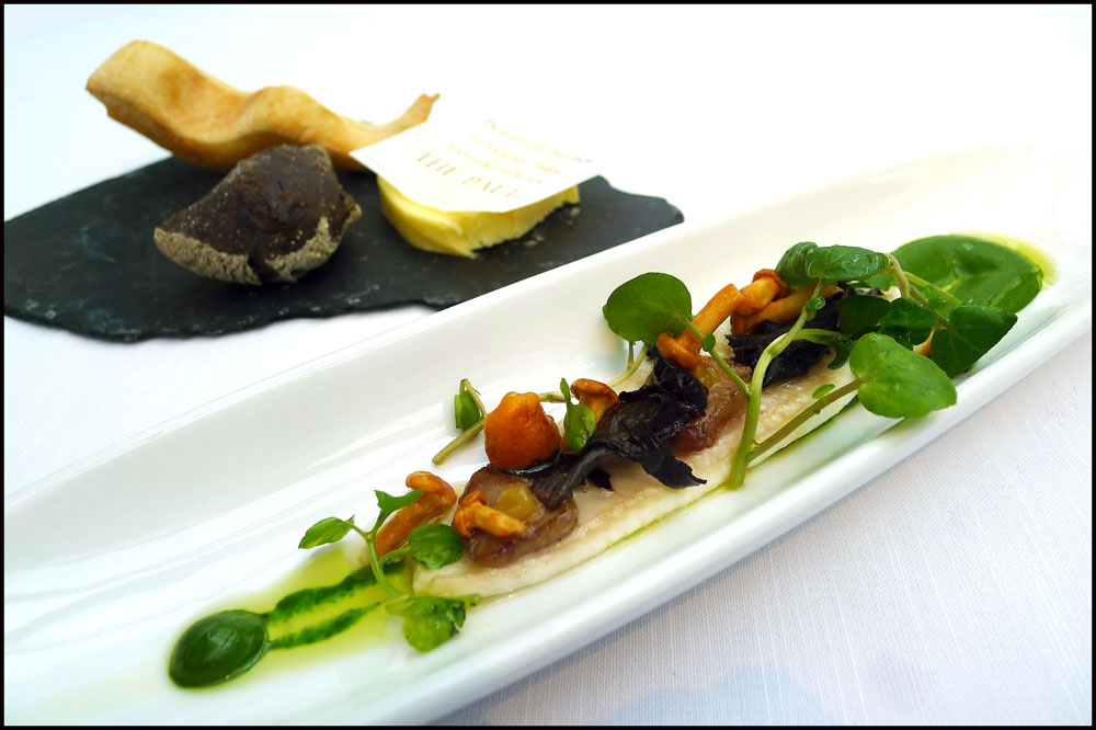 Chef Paul Cunningham has been cooking here for 7 years and sadly the clock was ticking down to total closure in 6 days from now, i detected a strange feeling in the air, the end of the show, the whole aura was very strange, the restaurant artwork was a little look into chef Pauls world… which seemed nuttier than a fruitcake ( in a nice kinda way ), a Rocking horse was suspended from the ceiling , canvas portraits of the chef and prints from `times gone by` covered the walls and totally obscure prints that Paul had taken himself or collected were hanging everywhere , totally whacky , but i liked it. As for chef Pauls cooking, well it was right up there with Europes very best chefs.A fine pedigree of past restaurants littered Pauls C.V , Chewton glen , Luckham park , Maltsters Arms , Harveys (with Marco pierre white ) Le champignon sauvage and Sollerod Kro….. WOW.