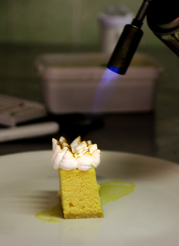 Lemon meringue , lemon tart , glazed meringue , lemon sorbet , lemon gel , curd and shortbread crumb….time for my favourite part of the meal.