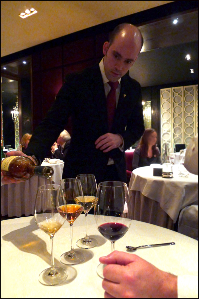 The Sommelier was right on Dimitris heels…with another big smile. “Welcome back Mr Spedding”.He was holding a bottle of Champagne and two glasses….I smiled a big stupid smile , I knew what was on the way….Lots of wine , we were to be sampling some of the Berkeleys fantastic wines with our dinner.