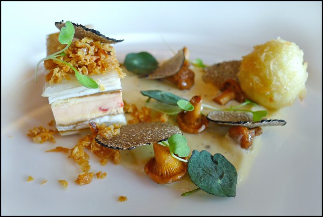 Terrine of Chicken, and it sounded just like that on the menu – As a result i chose not to go for this one and look what happened…it was more Foie gras than chicken , generous slivers of Truffle and beautiful Chanterelle mushrooms…Typical luck for poor ole me.