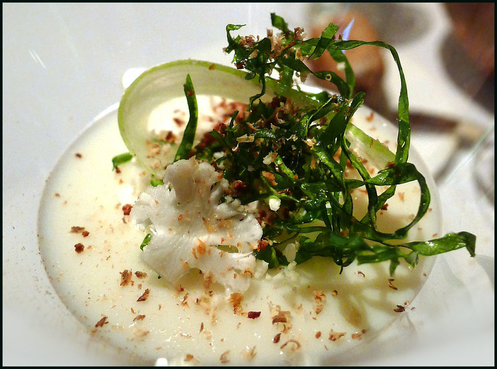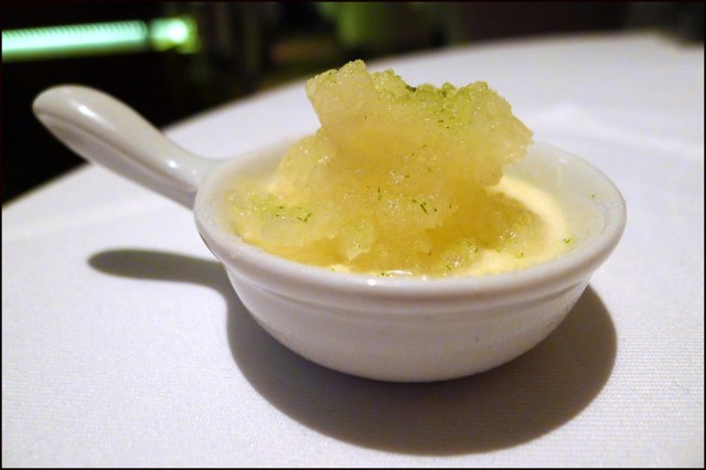 Foie Gras semi fredo , Liquorice , Lime , Frozen yoghurt.
