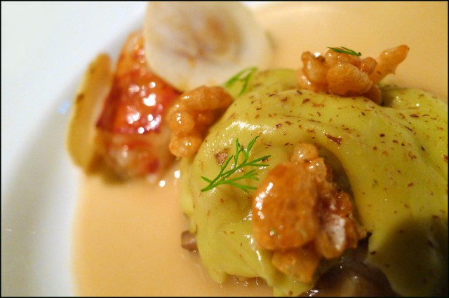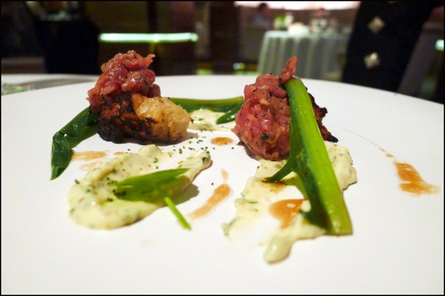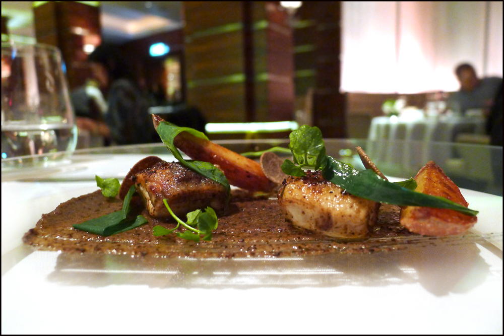 Another trip down to London and three more fantastic restaurants arranged for our weekend.First night would be the tasting menu at recently opened Alyn Williams at the Westbury hotel.This would be followed by Truffle tasting at Ducasse and Sunday lunch tasting menu at the Ritz…fantastic. The critical couple had been raving over Alyns cooking for quite a while so it seemed sensible to go with their recommendation and head over there as our first port of call on the friday evening.So first impressions…Beautiful , totally brand new and well thought out moody lighting set the scene for the food. The tables were lit from above so the food was put under the spotlight as it should be.