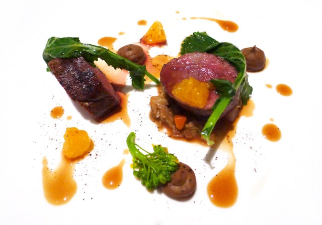 Venison , Acorn , Cima di rape , Rosehip vinegar , Mandarin.
