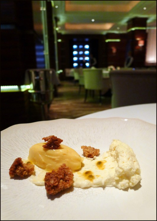 Cows curd cheesecake , Passion fruit , Honey , Flapjack.