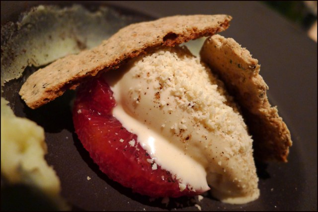 Blood Orange,Crystal Malt ice cream,Dried Milk,Toasted white Chocolate.
