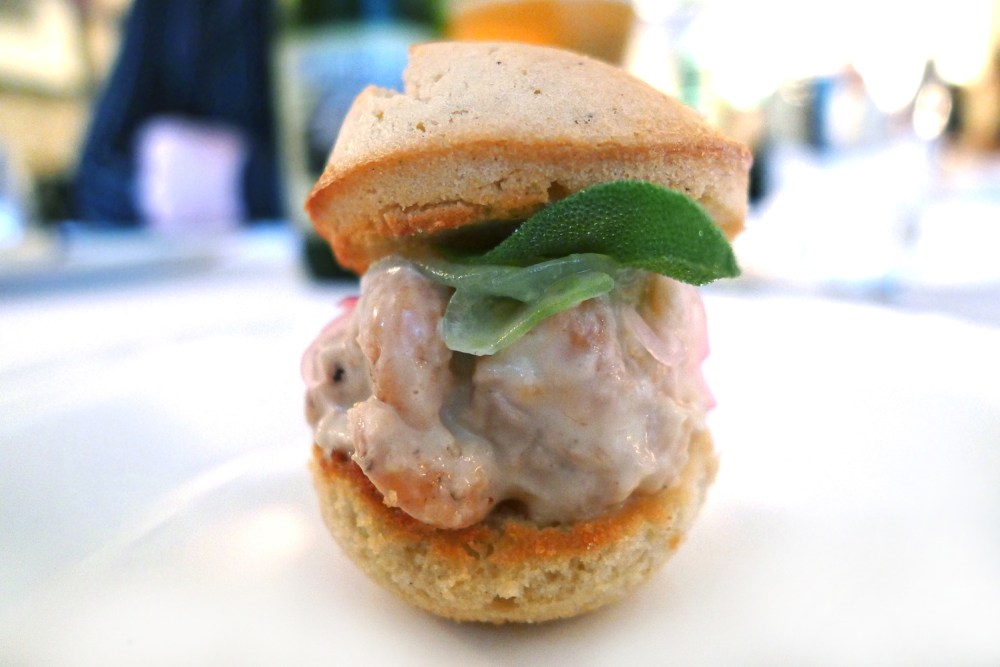 More nibbles in the form of a mini Aumbry Prawn burger.