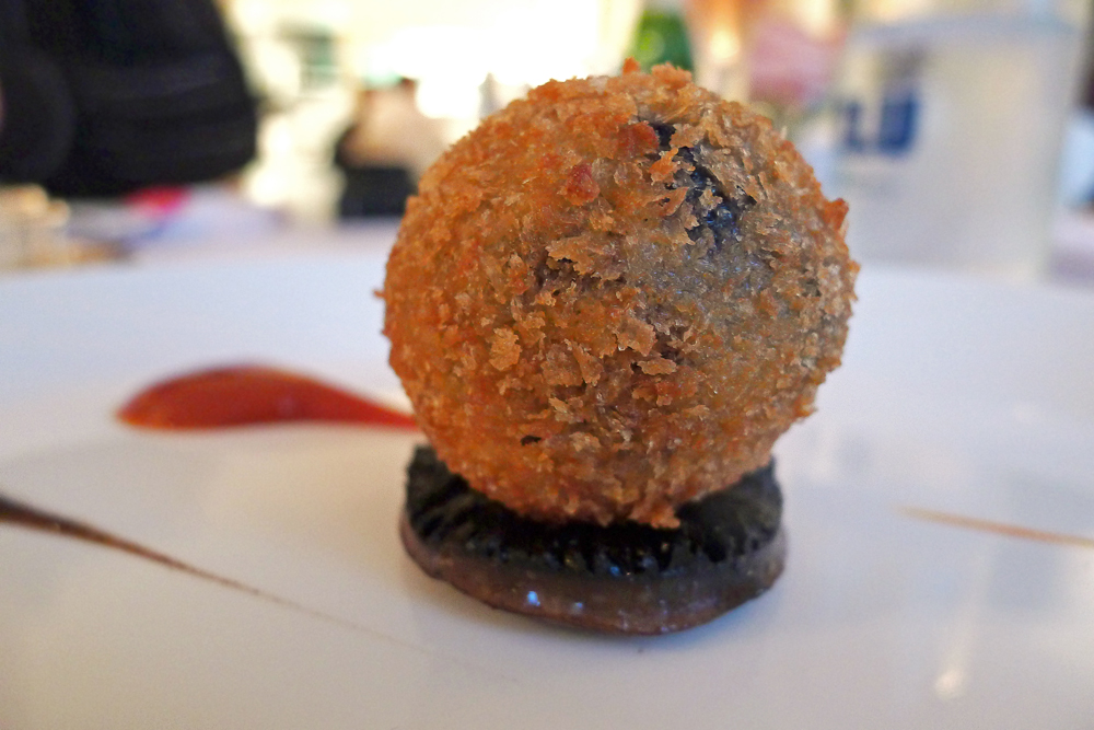 Bury Black pudding Scotch egg , Tomato ketchup and Mushroom relish. – A mini breakfast on a plate , nothing groundbreaking here but good use of local ingredients accurately cooked and full of flavour to the max….i could do a dozen of these every morning if i`m honest…very comforting.