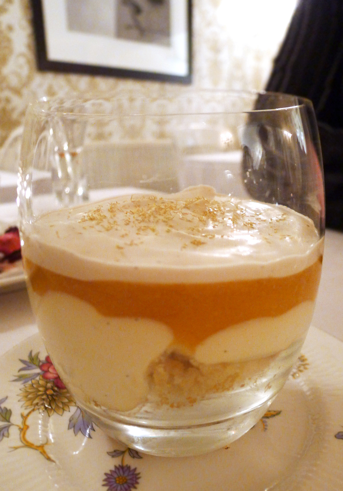 Aumbry Trifle consisting of an almond sponge base soaked in Colosia Moscatel with Chamomile custard, apricot jelly and moscatel syllabub. This was a Mary Ellen pudding in production so of course we would have to be the human guinea pigs….More sweetness to satisfy cravings.