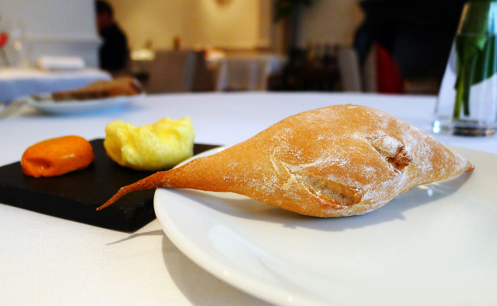 A lovely selection of breads on hand here , warm and only just baked. An unsalted and Tomato butter to heighten the taste experience.