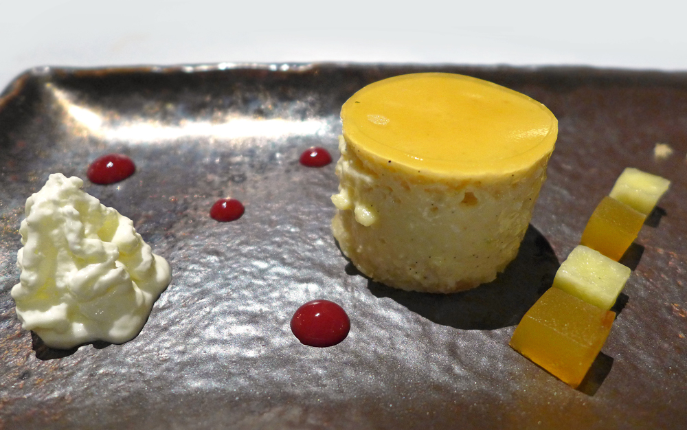 ubiquitous chipLime and Crowdie Cheesecake , Caramelised Pineapple Jelly , Fennel foam £ 7.00