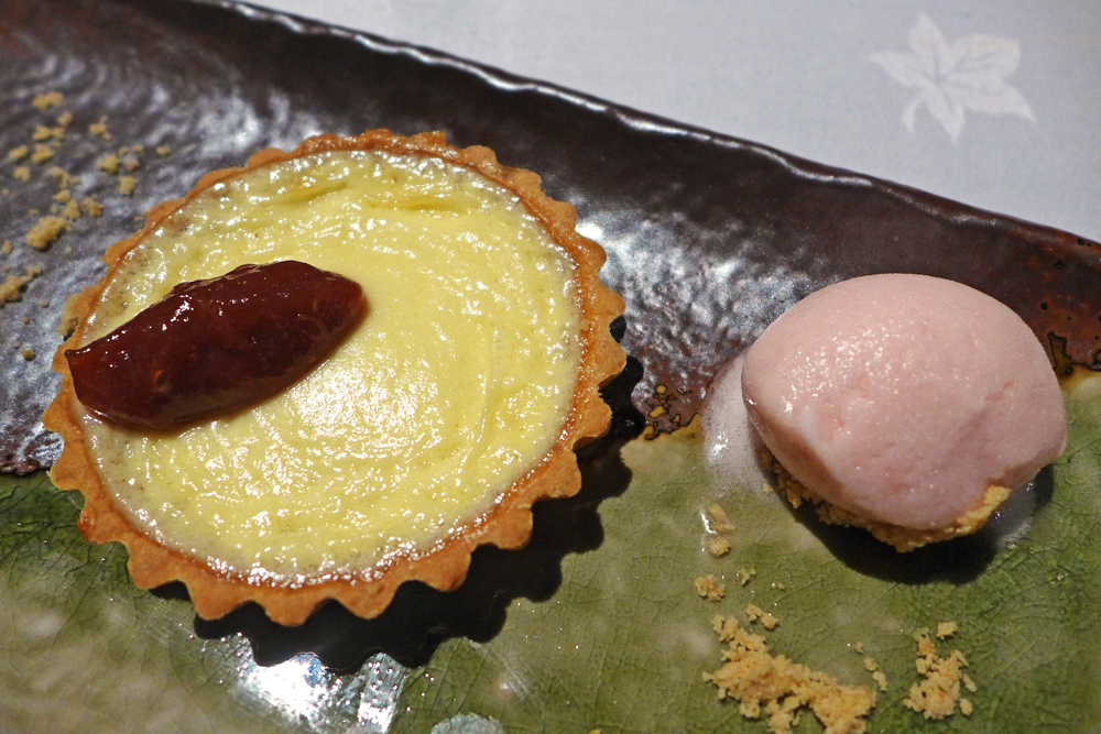 Rhubarb and Custard – Goats Milk and Lavender Custart tart , Poached Rhubarb and Rhubarb and Gin Sorbet £ 7.00