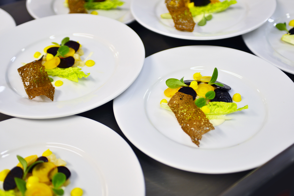 Living on the West coast of Cumbria It isn`t every day that you can come home from work , take a quick shower and then pop 5 minutes up the road to eat one of the worlds best chefs food for the price of a takeaway meal. On this occasion Simon Rogan had travelled up from Lenclume in Cartmel to my local catering school –   `Lakes College` near Whitehaven to inspire the next generation of up and coming young Chefs. Assisted by  Dan Cox ( director of Aulis ) Simon would mentor and over see the 2012 graduates as they all teamed together to produce a 5 course meal in the `Rogan style`. The ingredients were all from within the region , local farms , foraged and Cartmel grown from the Lenclume gardens.