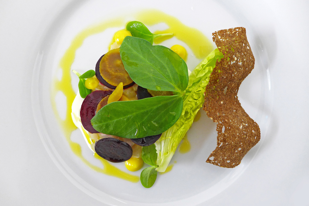 A little amuse to start was a simplified Lenclume Crispy bread wafer with Cream Cheese , Vegetables and Herbs.