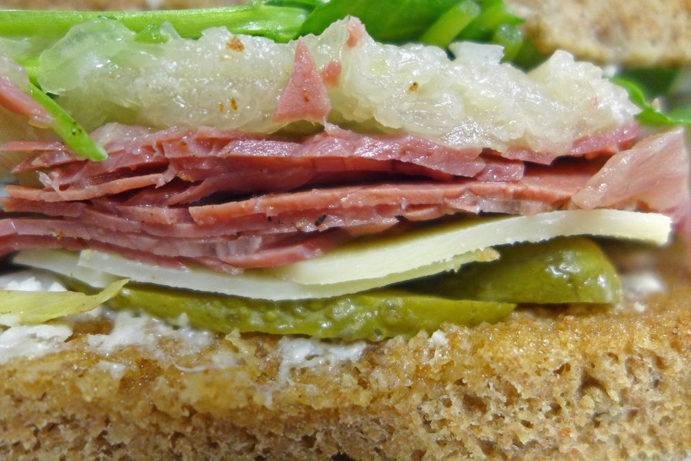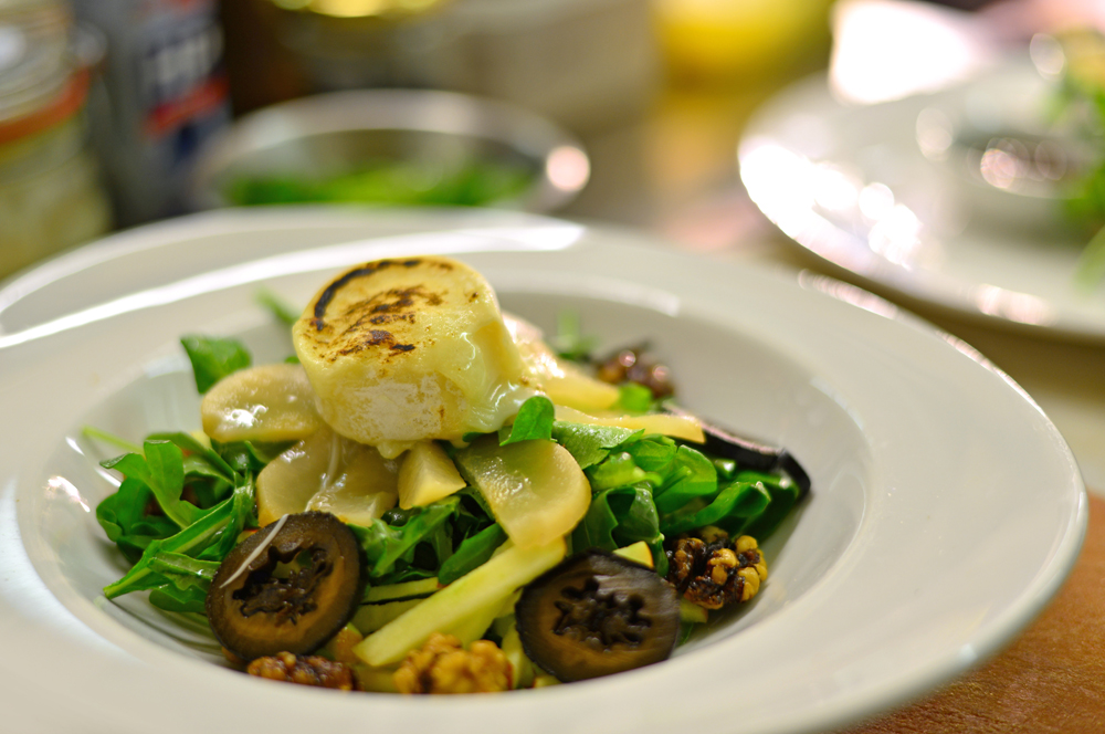 Salt Beef , Gherkin , cheddar sandwichP1010869 DSC_4164  Baked Thornby Moor Goats Cheese , Waldorf salad.