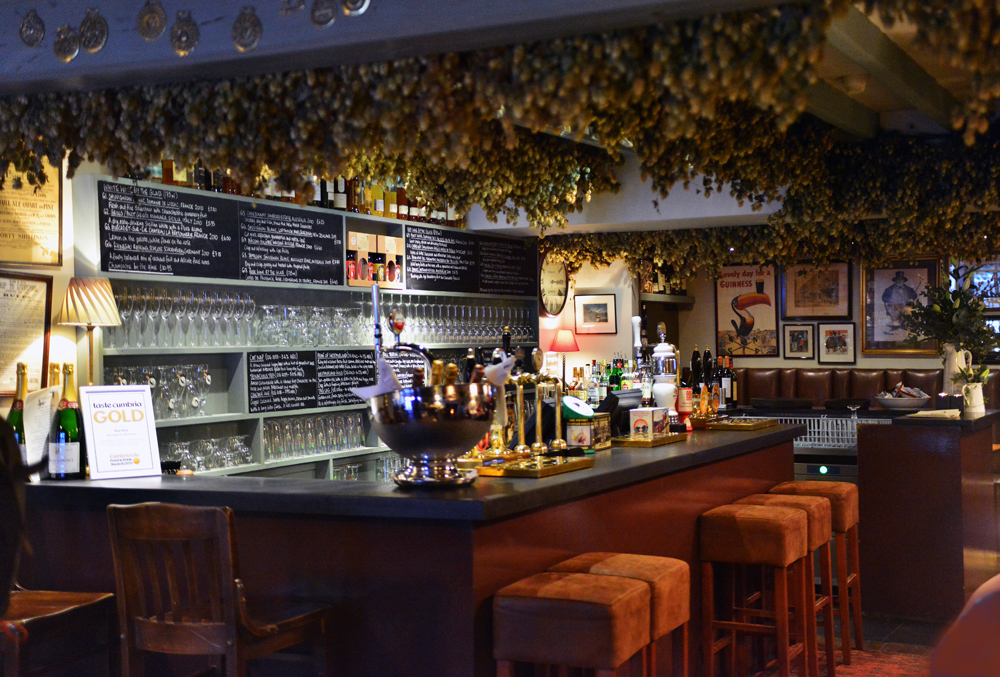 Hops hanging from the bar ceiling