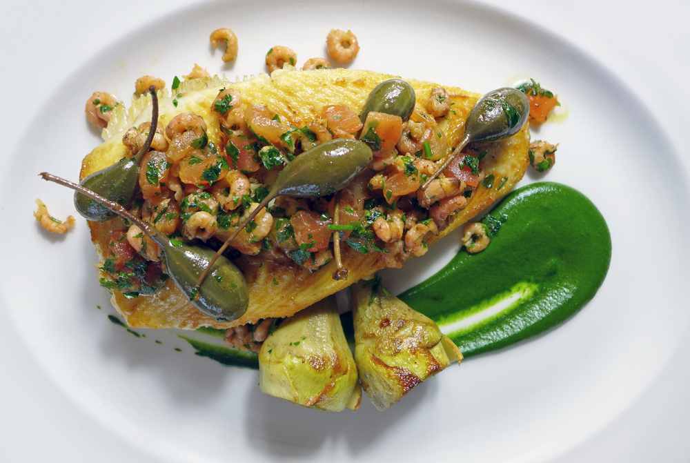 Chef plates up the Game terrine during lunch service.DSC_4200 Coarse Game and Chicken Liver Pate , Cider Jelly , Toasted Sourdough , Smoked Butter.P1010883  Whole Sole , Brown Shrimp butter , Caper berries and New potatoes