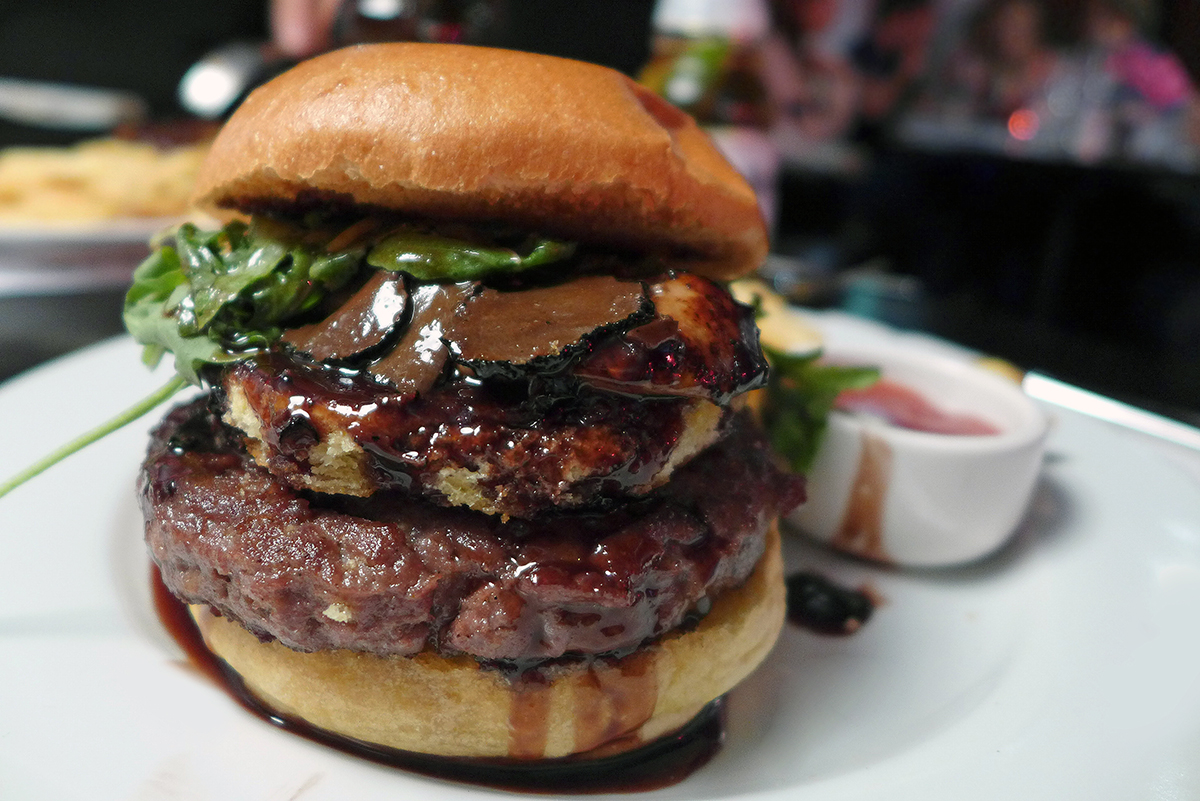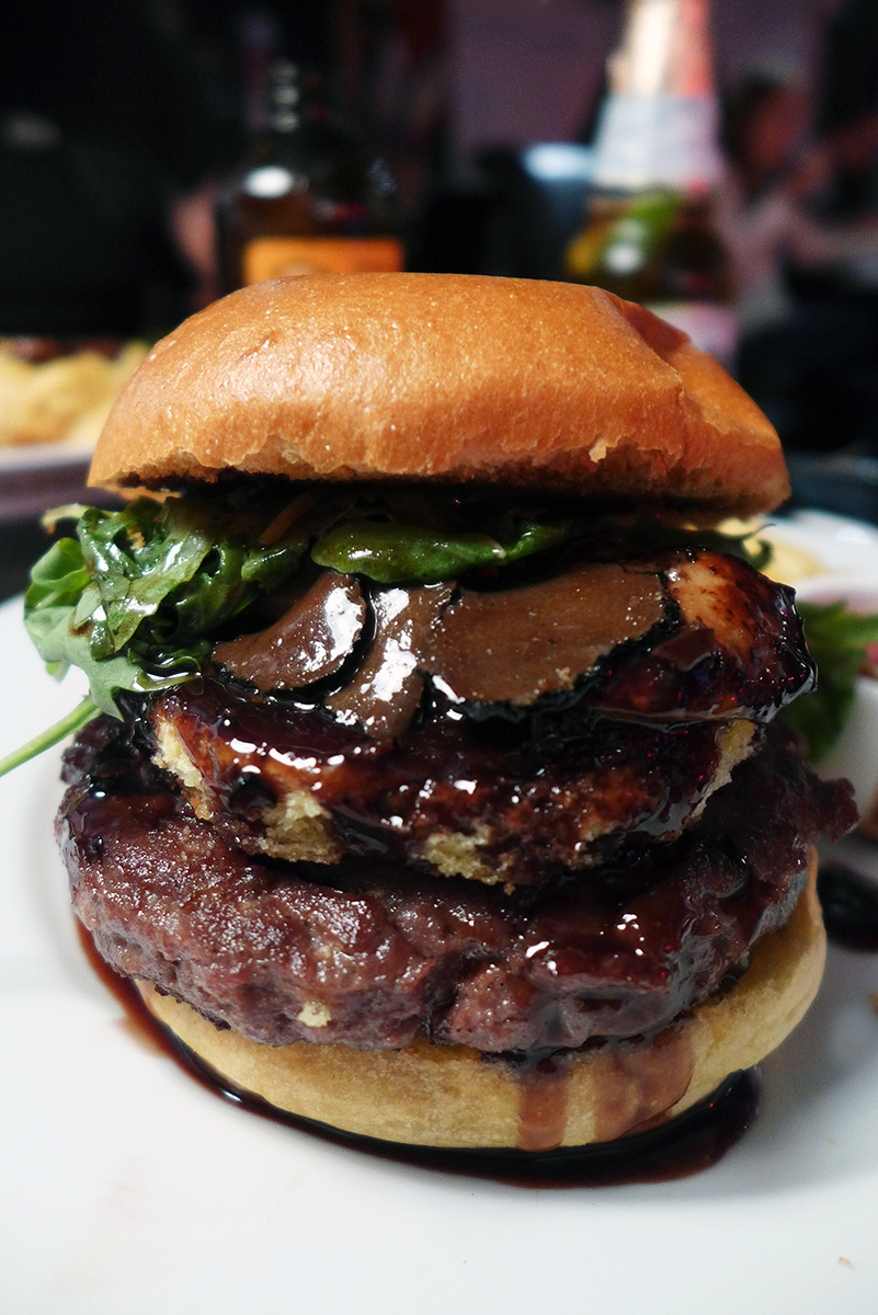 My turn to order and I went for The Rossini Burger , the ultimate indulgence for the fine dining enthusiast. Butter brioche bun , Chuck steak and bone marrow patty , Pan fried Foie Gras , Butter fried crouton , Black Truffles and a reduced Veal stock and madeira sauce…..Oh now cmon , do burgers ever get any better than this ? ( Available with notice as this one isn’t on the menu ).