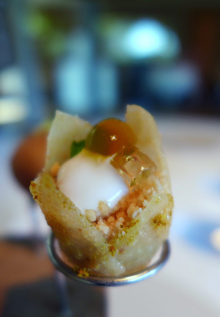 Morocco – Almond , Rose , Honey , Saffron , Ras el Hanout , Goats milk Yoghurt. – Highly aromatic bite encompassing all the flavours of Morocco. This was a stunning flavour explosion.