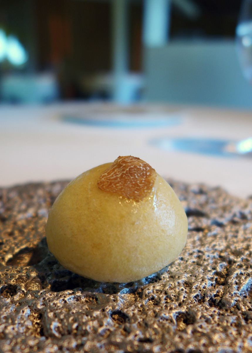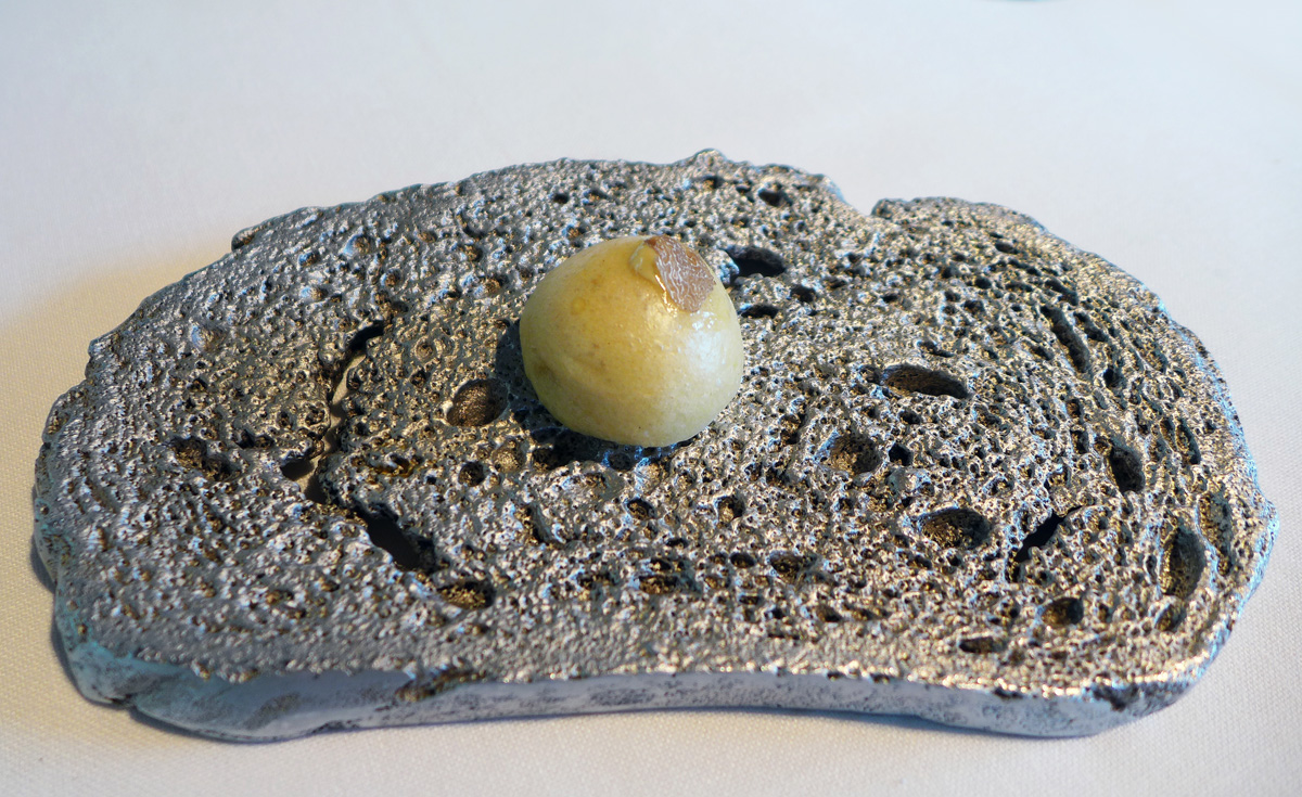 Truffled Brioche….soft , sensuous and heavenly flavour of Truffle. Dont ask me how they moulded that silver baseplate off a slice of Bread .