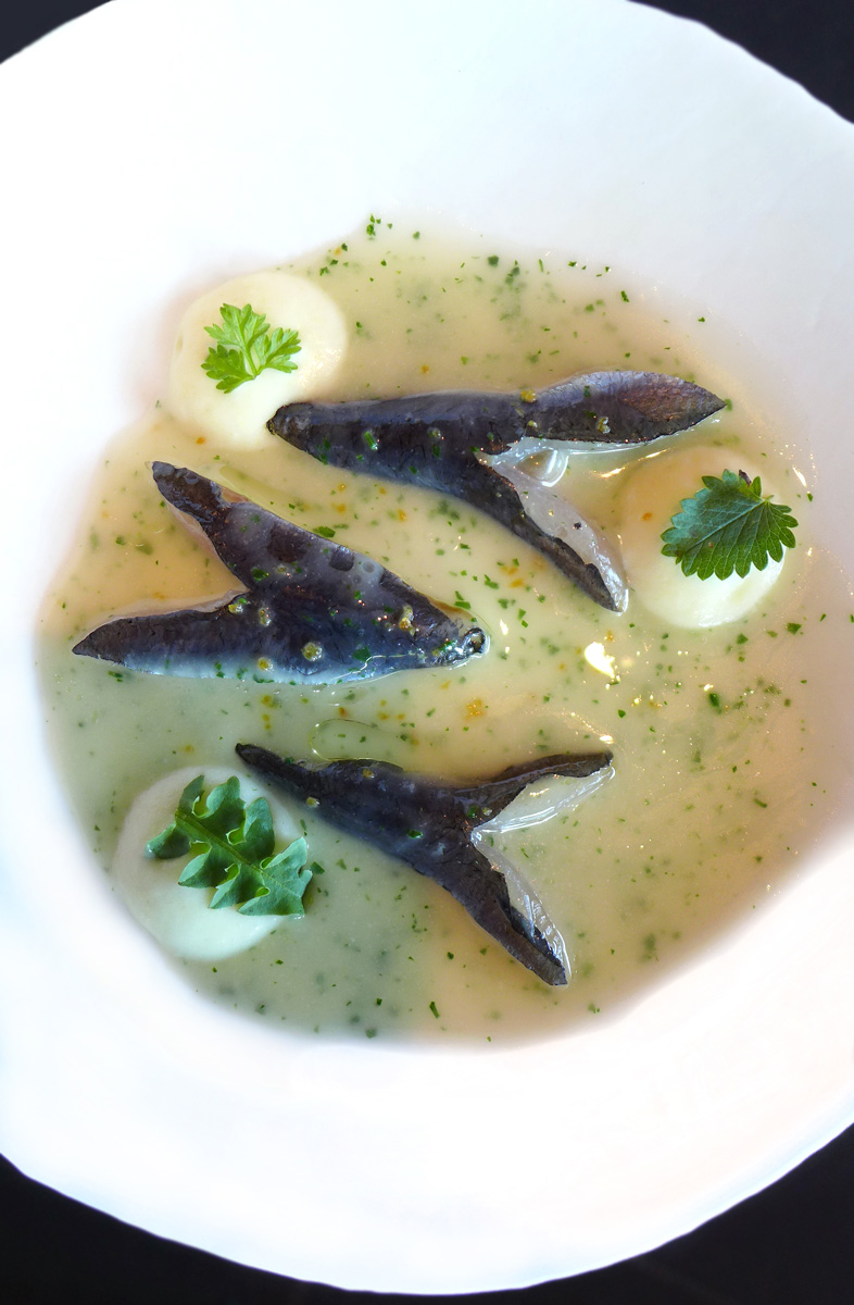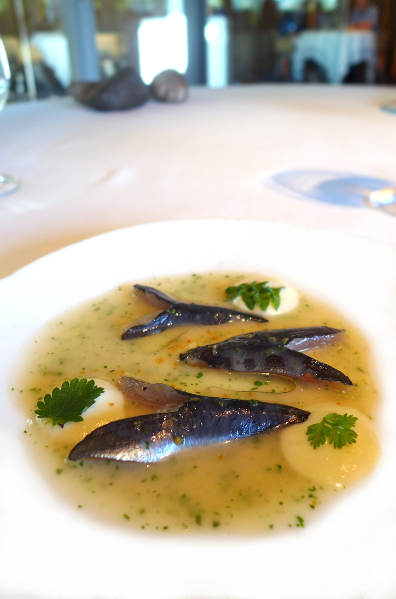 Charcoal grilled Cheeks of Sardine with Green sauce. – Ohh dear , this was the worst taste experience ive had in a long time. Semi raw sardines on a sauce that tasted of “not a lot “. My son Max took one bite and turned White….” Im really sorry Dad , i can`t eat this “… ” Max….. you can`t leave a full plate of food , just try some more”. Then i tried my own…….. Ahhhhh , i see what you mean. Enough said.