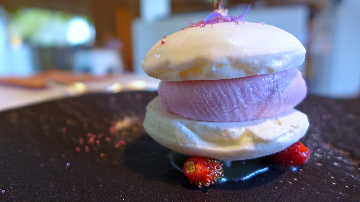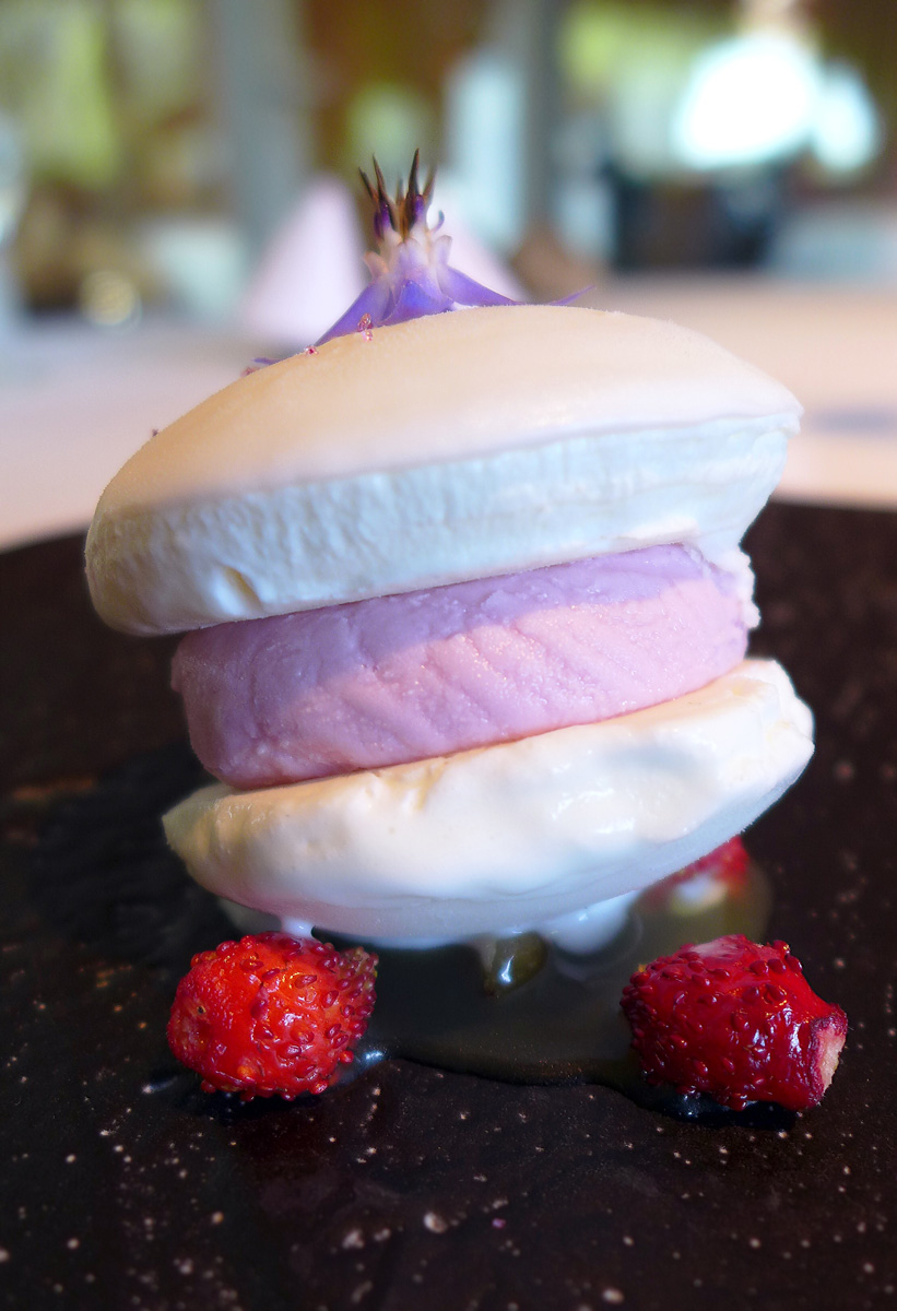 Sourdough ice cream with Cocoa pulp , fried Lychee and Sherry vinegar Macaro. – A Jordi Roca creation and an introduction to more sweet treats.