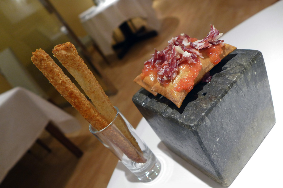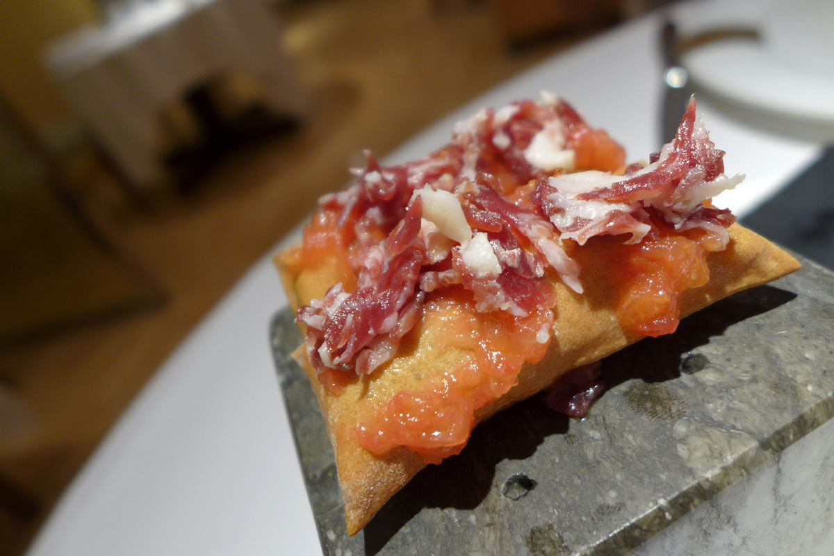 Pere Massana , Chef and owner came over to greet us and welcome us to his restaurant and seconds later the first Tapas arrived at the table and we were straight into our food.