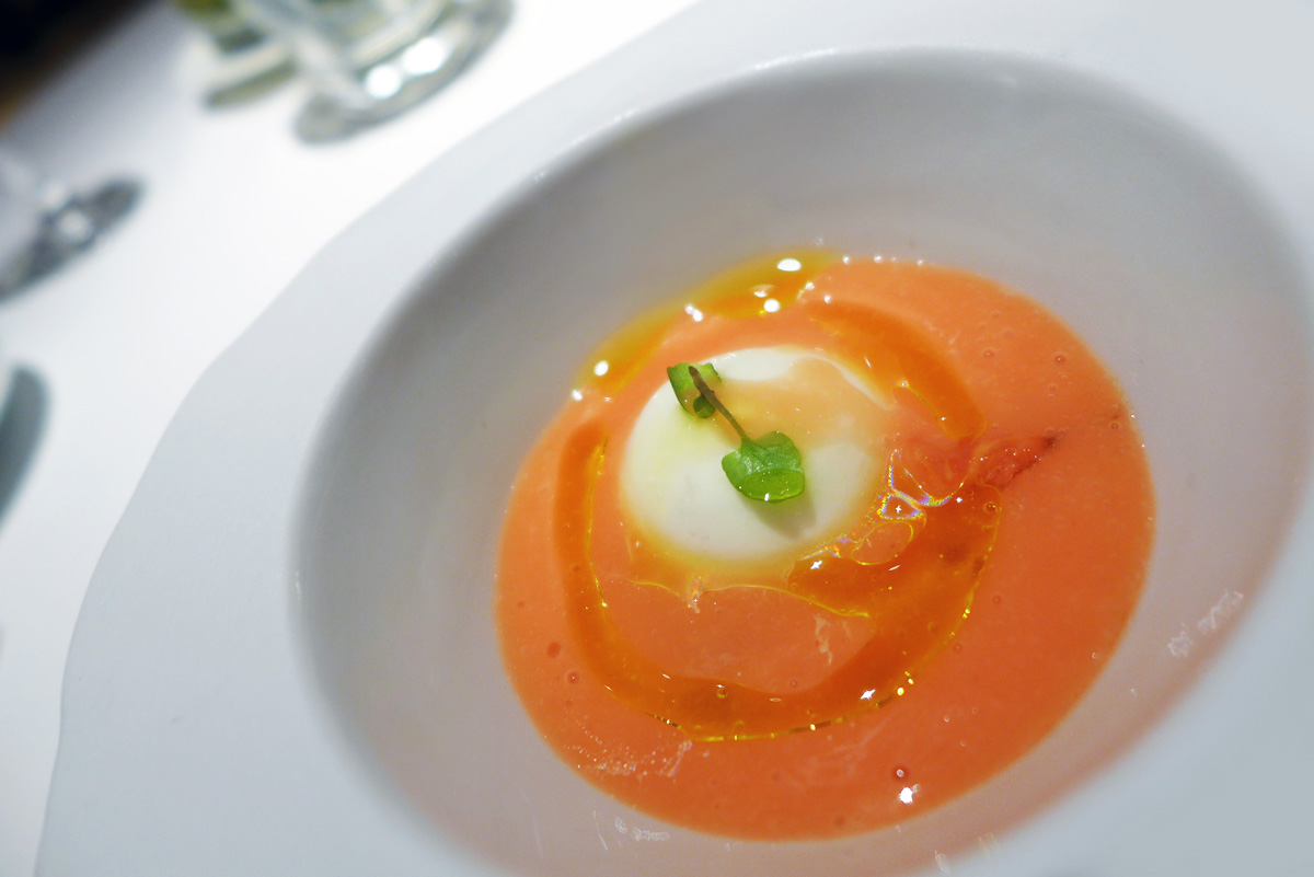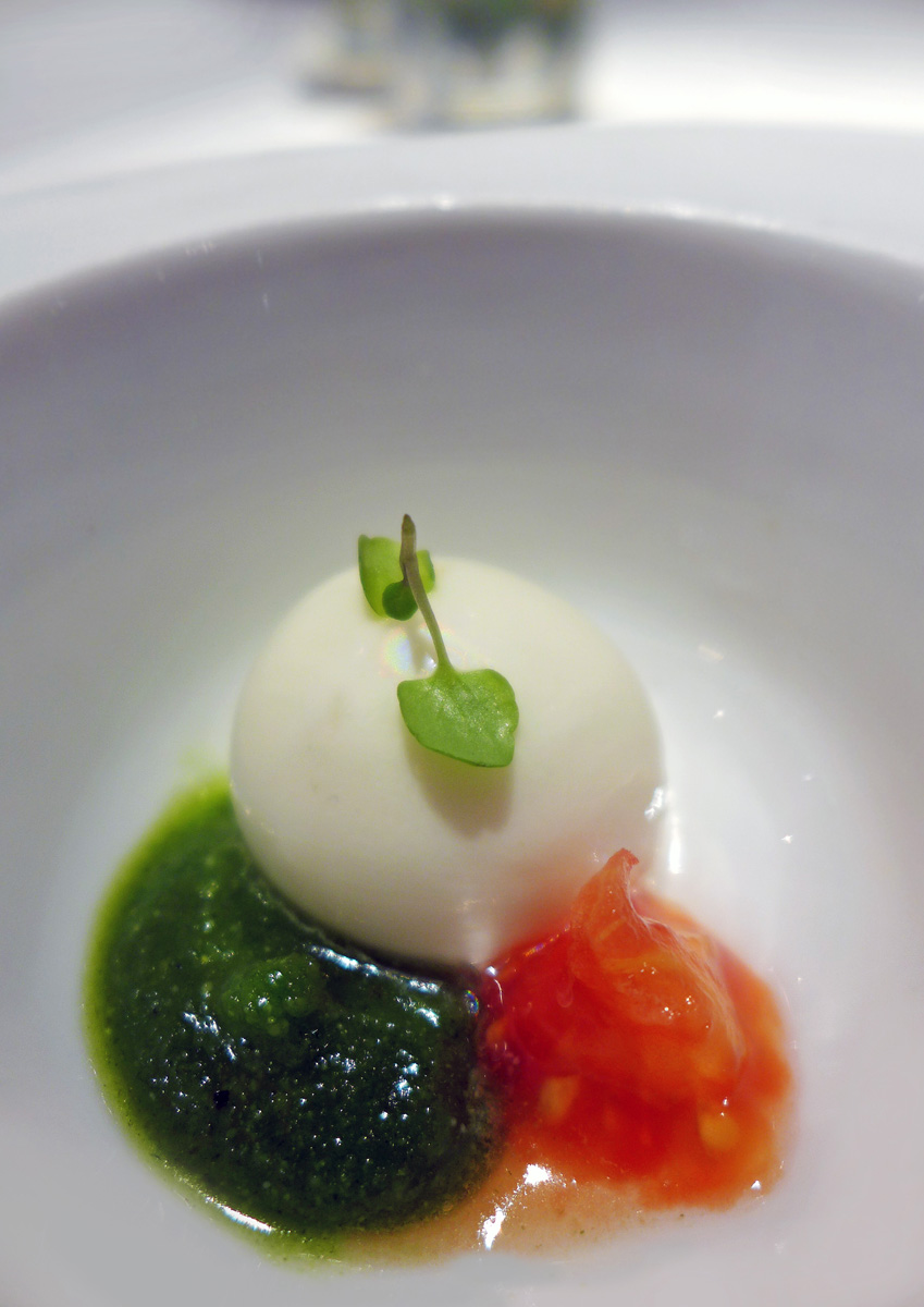 Buffalo Mozzarella spheres , Pesto , Tomato soup and Caviar. – Fresh flavours and simple food that just tasted awesome. Mozzarella , Tomatoes and Freshly made Pesto. Another classic meeting of flavours that totally complement each other.