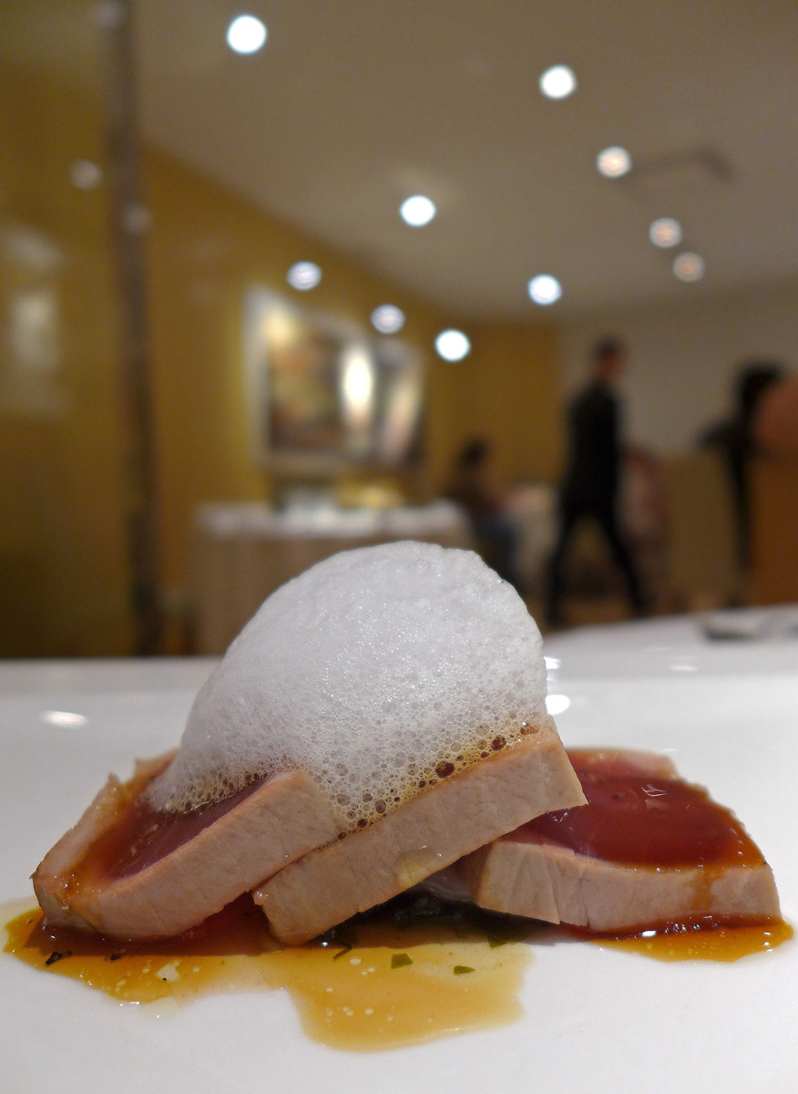 Red Tuna on a Lentil Stew “Beluga” veil of Bacon , Wakame seaweed and Sea air. – A rare piece of very fresh Tuna with nicely paired accompaniments. The `Sea air` was exactly that…A sea water foam.