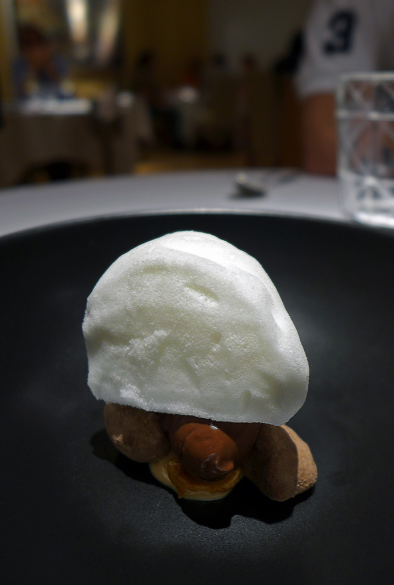 Chocolate , Peanut and Lemon , Creamy Chocolate , Snow of Lemon with sugared Peanuts. – This was so weird , it was like actually eating a Lemon snowball and had exactly the same texture and feeling as eating a piece of compacted fresh snow.. I was gutted when i checked the menu to see that this was my last course…i really could have eaten another two or three dessert courses…. Maybe next time i`ll do a deal…..Oh and there will definitely be a next time. It`s a long way to get to Girona from the English lakes but ill be back to Massana if nowhere else.