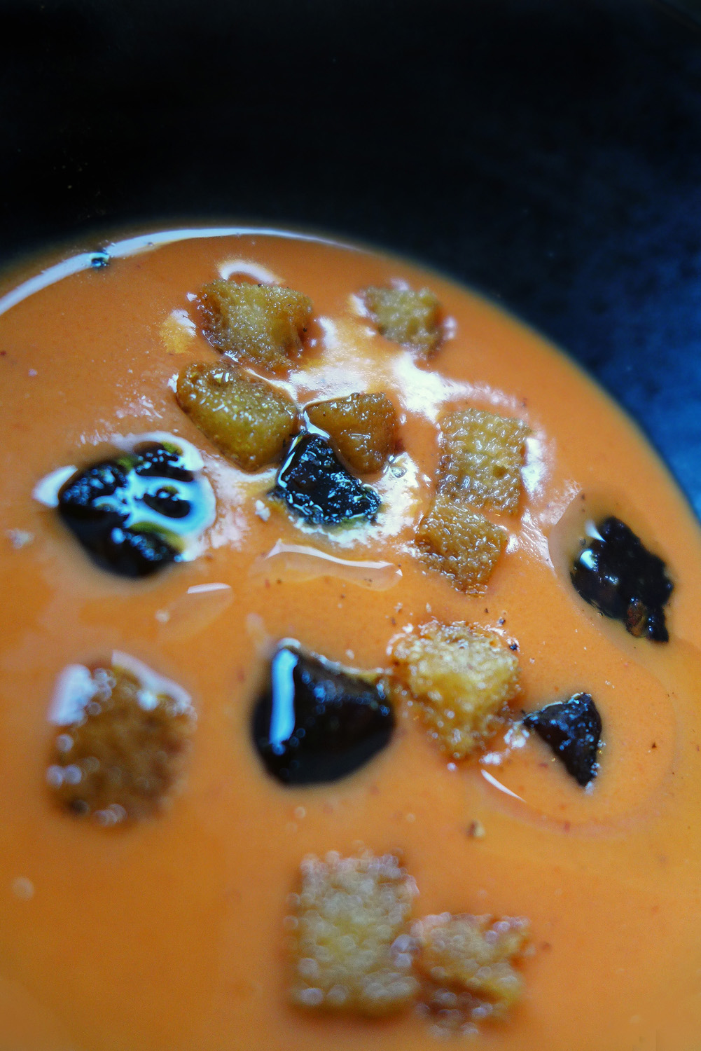 Strawberry Gazpacho with Black pudding and Croutons