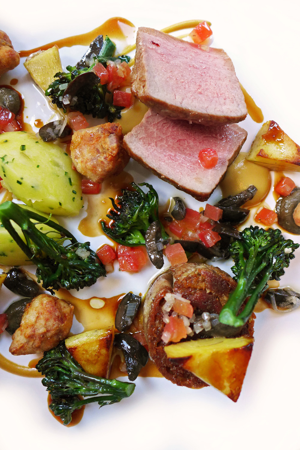 Lorton Lop Pork – Black pudding, Cider glazed Potato confit, Carrot-mustard