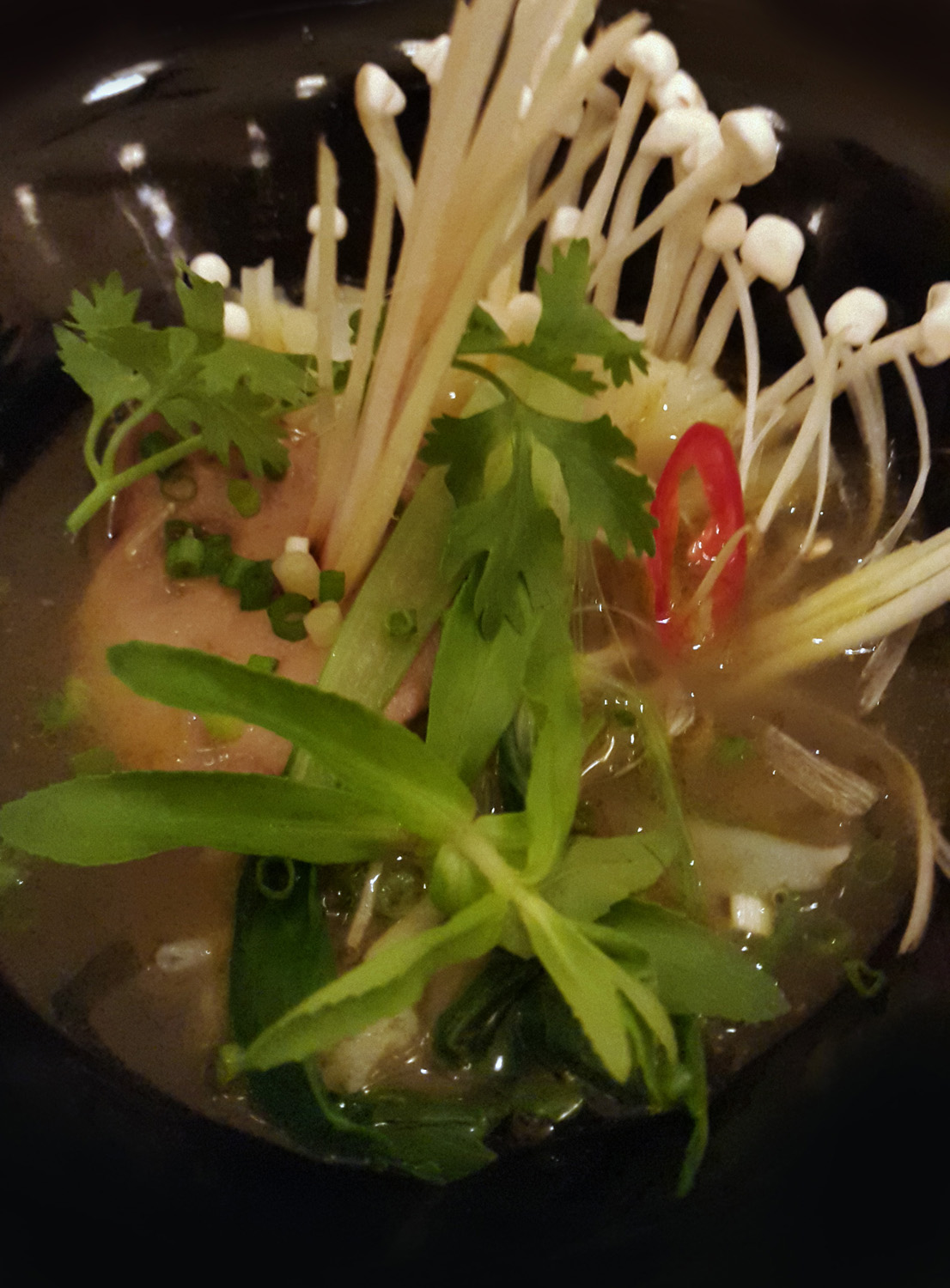 P1120949  A classic of Vietnam is the “Pho” soup. This version contained poached Foie gras.