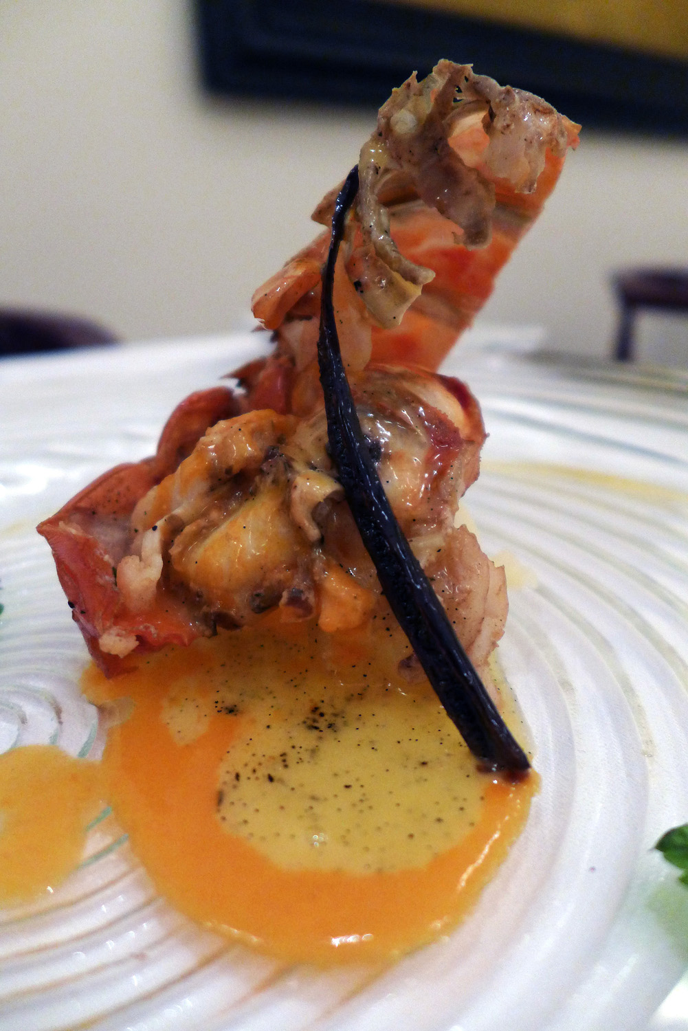 Lobster from Nha Trang rhubarb candied in orange juice, Indochina vanilla and bisque .