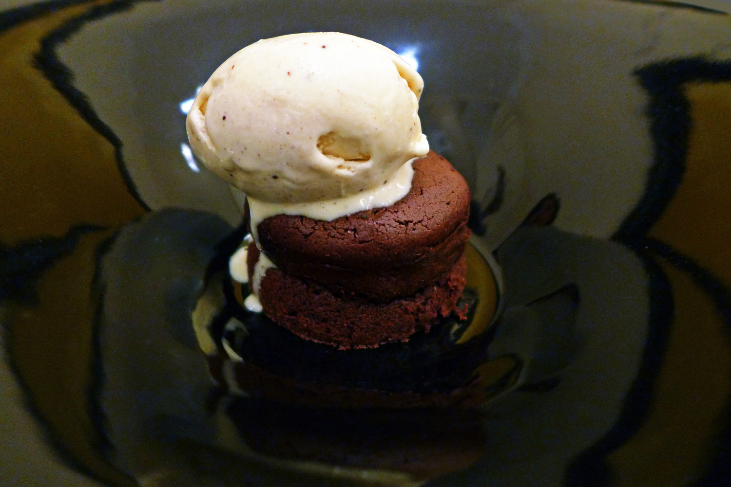 P1120988Chocolate “Grand Cru Valhrona” Half cooked, recipe of my mother, Cassia cinnamon ice cream