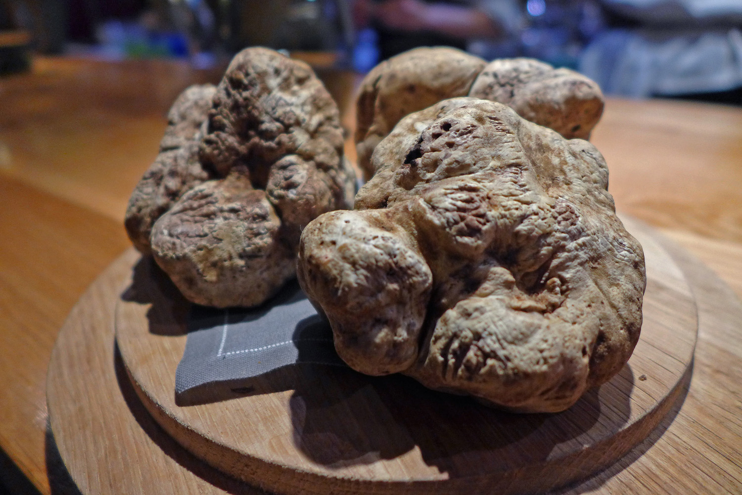 White Truffles were on the menu during my visit. I was told that they were still in the ground in Alba , Italy 24 hours  prior to my visit. They certainly smelled incredibly intense. We were asked if we would like some Truffle with one of our courses – “Absolutely”. I noticed that many other diners were also going for the Truffle option. One mistake I made ( as no doubt others did ) was not  asking  the “supplement” price. It was £35 per person per dish. Well at least I had the experience but personally no food on earth justifies a £35 per dish `extra` for a few wafer thin slices of  White Truffle….Never again.P1130928