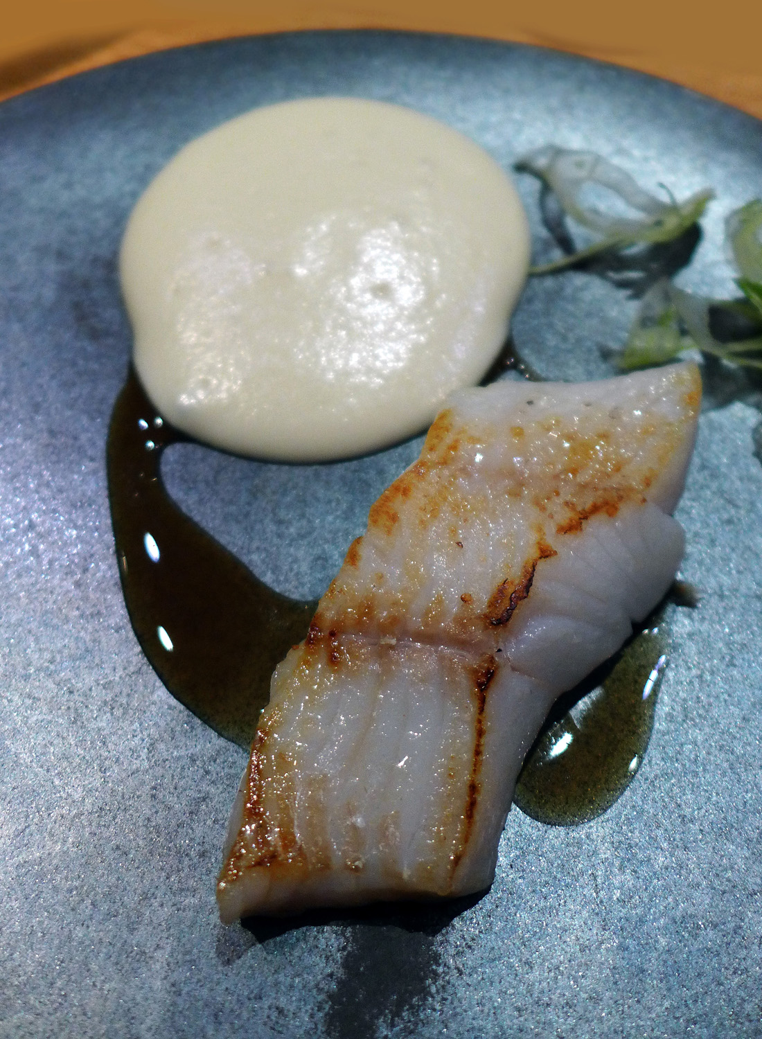 Pollock , smoked potato puree – This was Mikaels favourite dish. I would never order Pollock off a menu , it`s a tasteless  fish and the texture isn`t good. We just throw them back into the sea when we`re fishing.