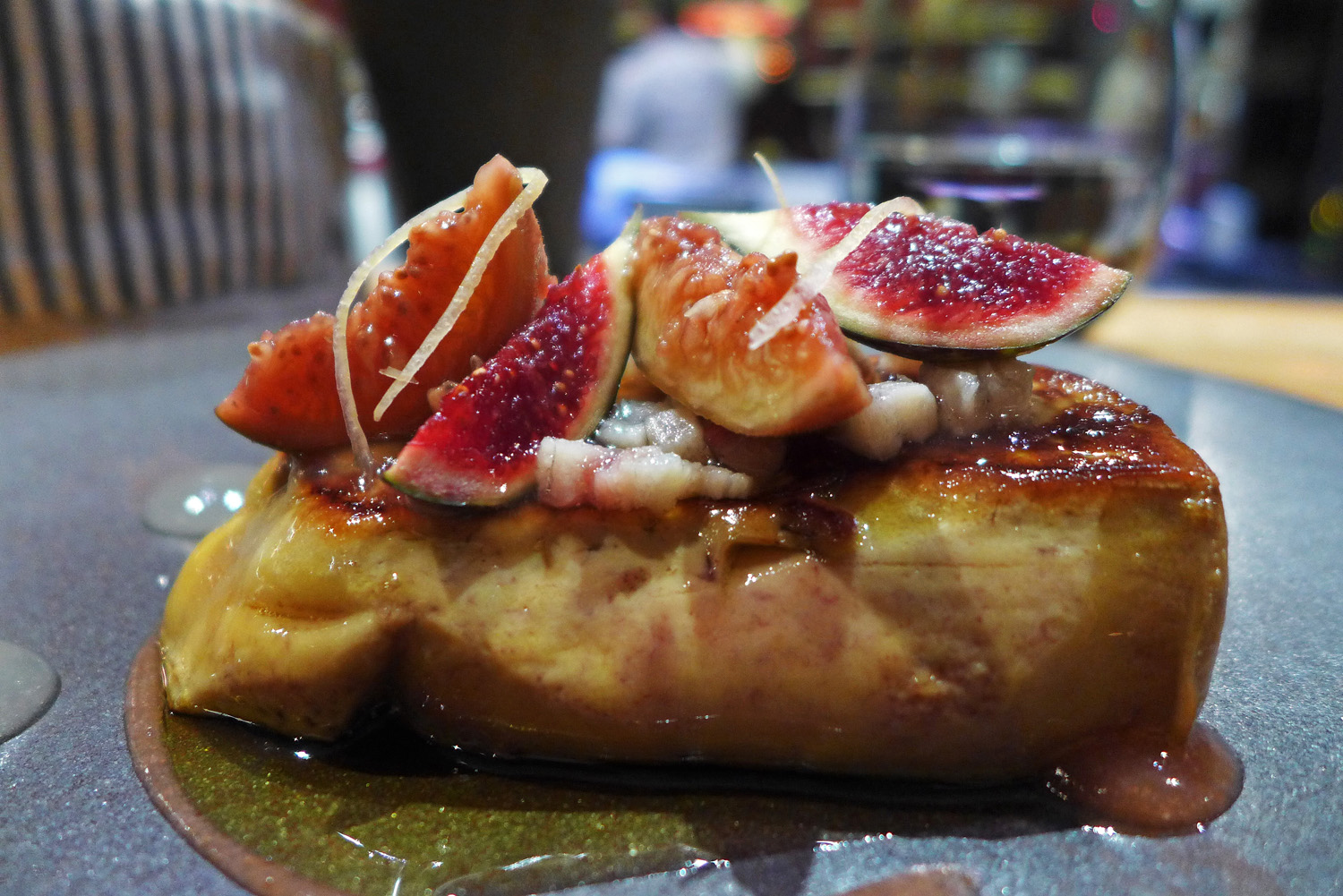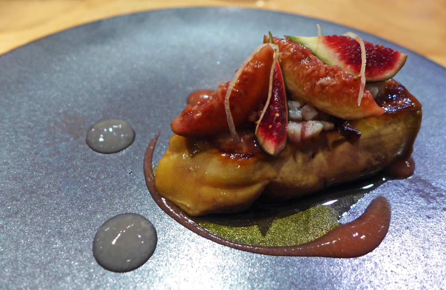 P1130972 Foie Gras with fresh and smoked Figs ,  Lemon – My kind of food , heaven on a plate. A huge piece of Foie Gras which I ate very slowly savouring every mouthful. A wonderful dish and definitely best part of my menu.