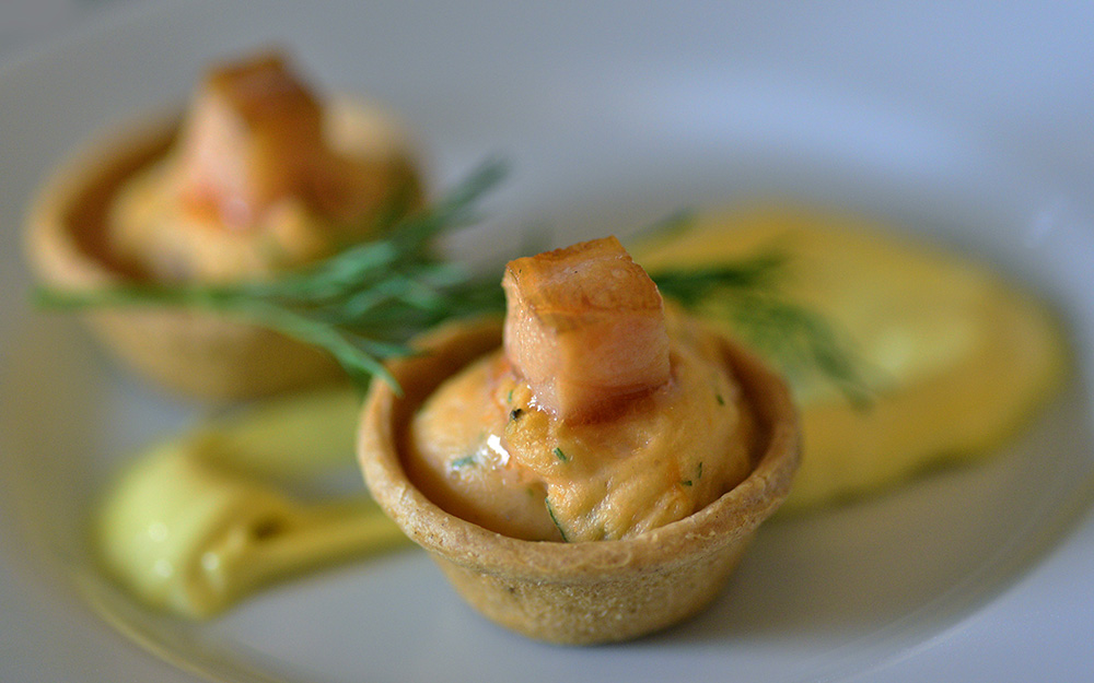 Little freebies – Scallop mousse and smoked salmon tartlettes.