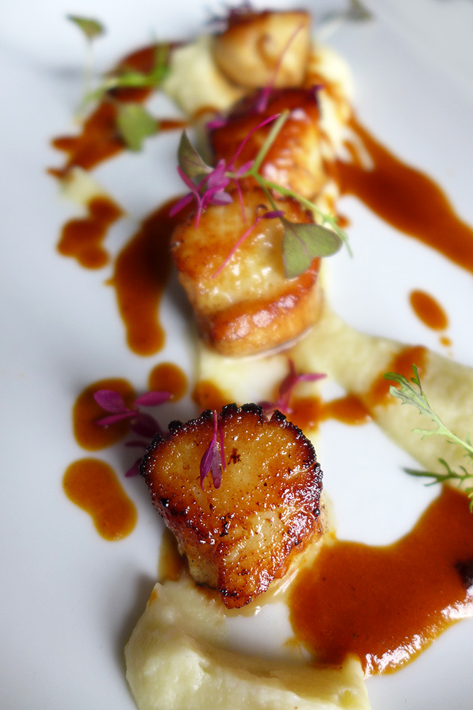 Seared Scallops on Cauliflower puree.