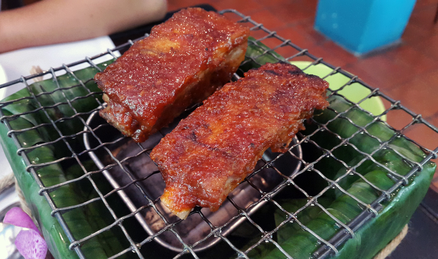 Spice rubbed baby Pork back ribs , glazed with Issaya house blended Chilli paste.