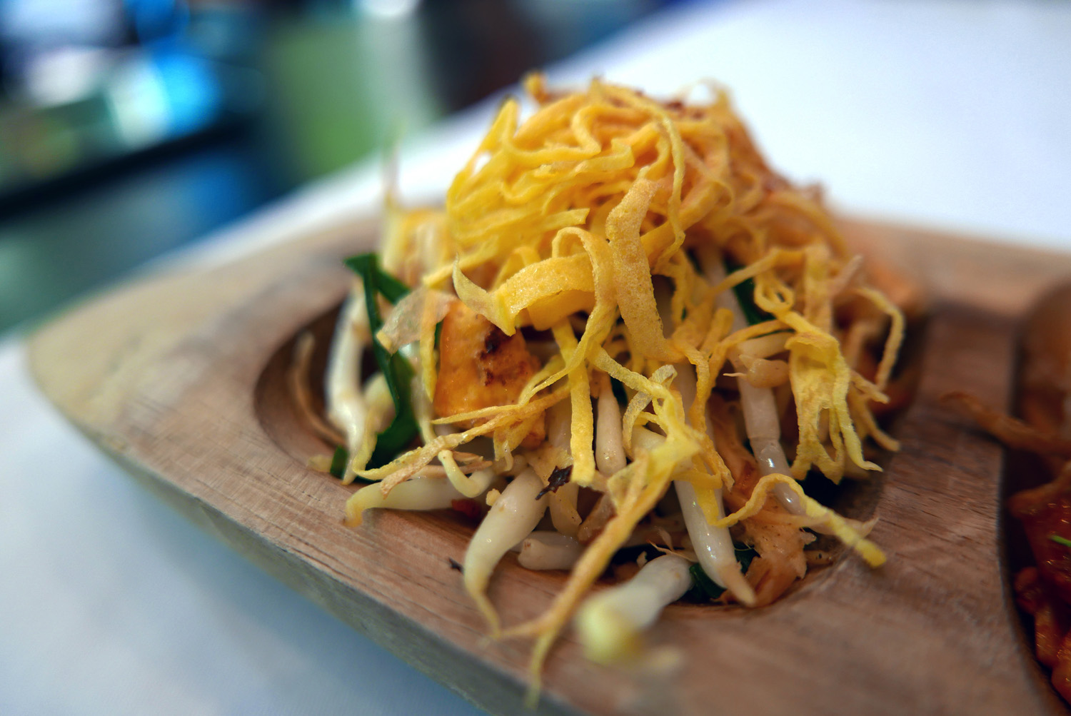 The tasting menu started off with 3 tasting dishes – Banana blossom and heart of Palm salad , crispy Shallots and roasted Peanuts in a Chilli jam dressing / Tuna tartare Thai style / Crispy rice pancake with pulled “turmeric” chicken ,Beansprouts and Coconut.