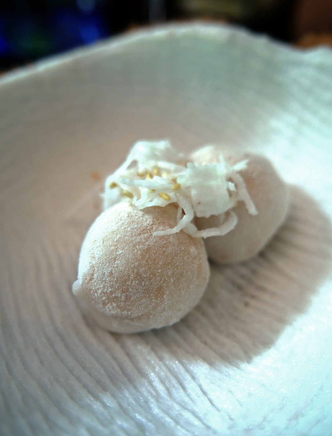 Coconut Mochi ice cream with young Coconut shavings.