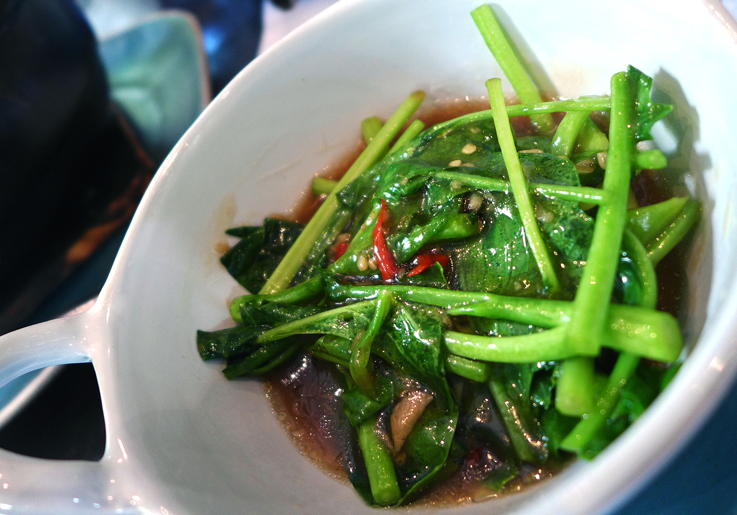 Issaya Siamese club , currently sits at number 39 on the list of `Best restaurants in Asia 2015`. I`ve been to Bangkok many times and this was my first visit to Issaya.Suitably impressed i`ll certainly be back for more as soon as possible. My stay in Bangkok was only a quickie before heading off to Chiang mai so I booked into Issaya for lunch. It`s a really good menu with lots of choices. One of those menus with so many dishes that it`s impossible to choose as they all sound totally wonderful but I decided to go for the Tasting menu to see what the place was all about. My meal consisted of a number of courses served together in traditional Thai style at 2,500 baht ( £49 ) showcasing chef Ian Kittichai`s cooking and the use of some premier Thai produce. There`s also a set menu at 1500 baht ( £30) and the extensive a la carte which is individually priced.