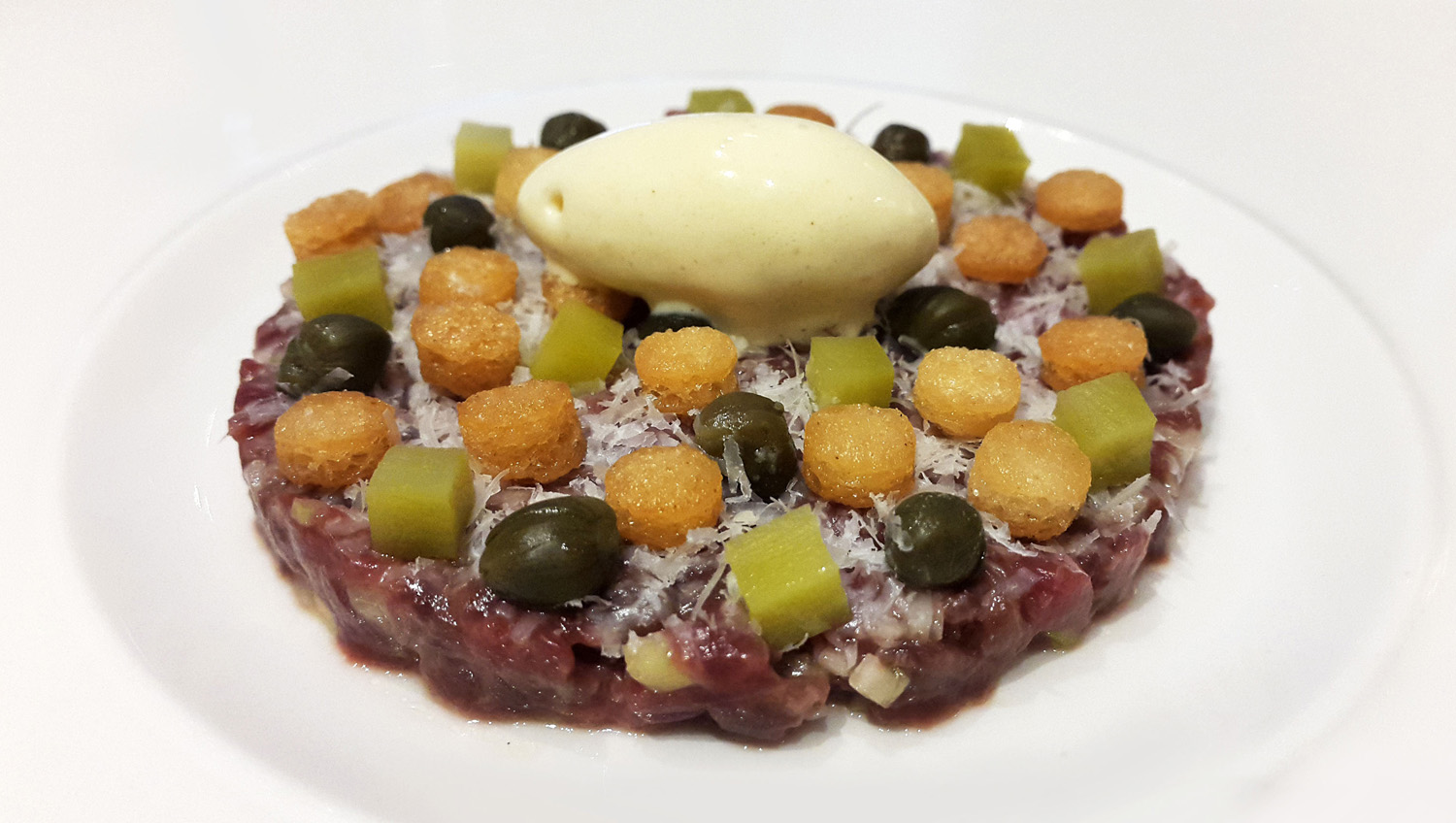 Tartare of Roe Deer from Stobo estate served with Mustard ice cream.