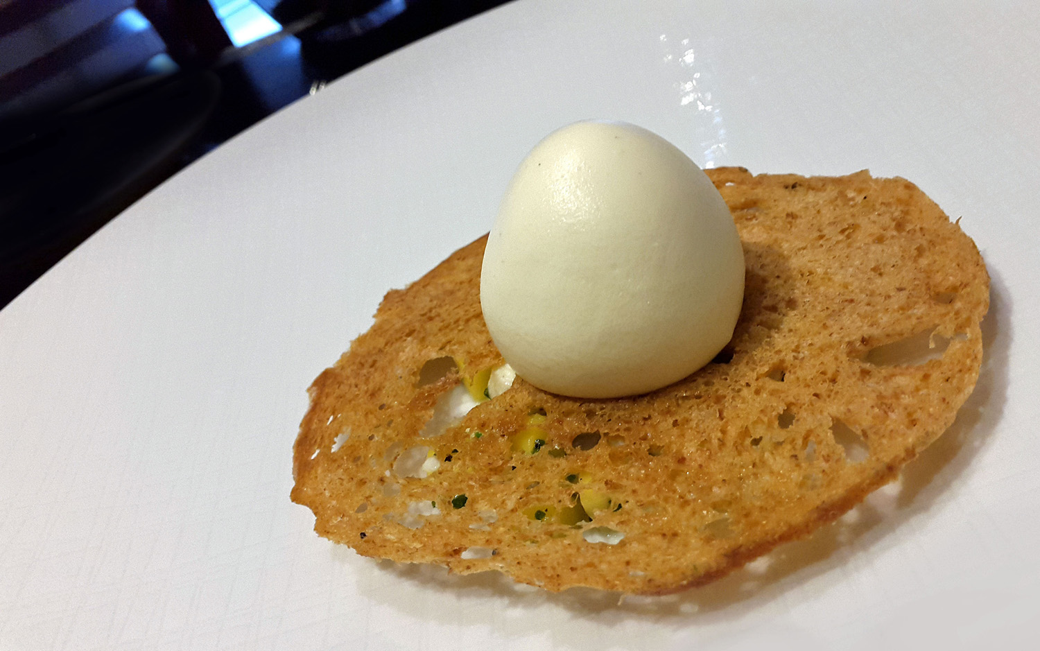 Barbequed shoulder of Ayrshire Pork served with Chick Pea. A very clever little treat here , ohh jeez I could eat one right now. Potato base topped with the Pork and the Chickpea bun top. The Cheese is actually Turnip.